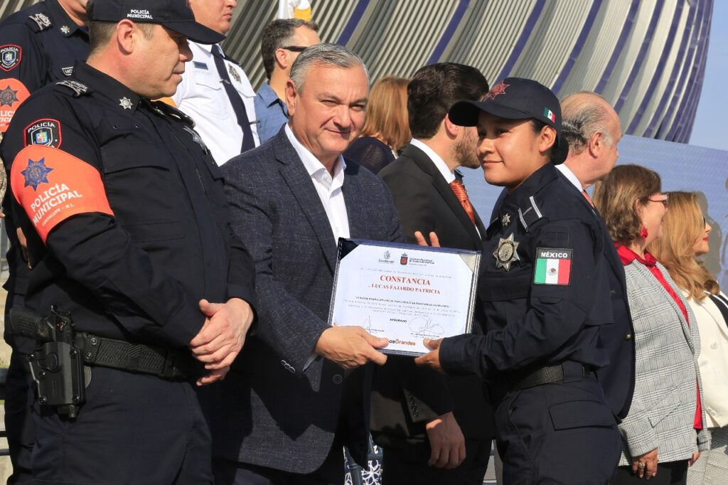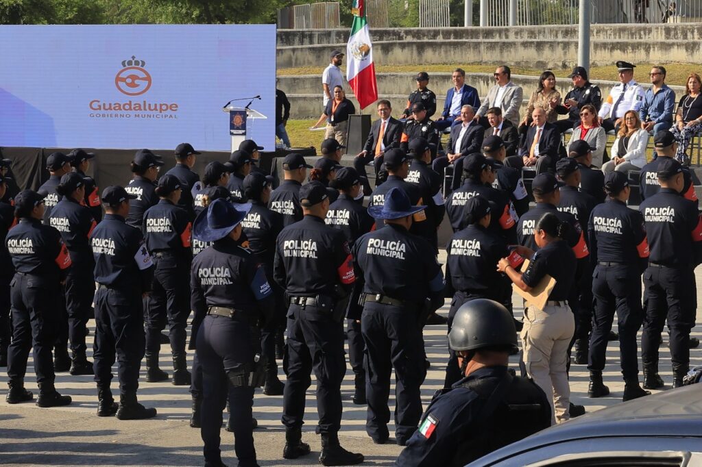 “Guadalupe tiene un déficit de policías, hoy con esto estamos en un nivel estándar, queremos llegar a mil policías, lo cual nos permita tener una policía cercana a la gente, que todos los barrios estén vigilados y ahora sí hacer las cuatro delegaciones para que la policía tenga una movilidad más cercana”, detalló el alcalde de Guadalupe.