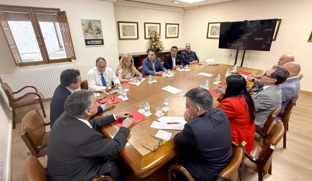 La reunión estuvo encabezada por el Rector de la UANL, Santos Guzmán López, y el Rector de la USAL, Juan Manuel Corchado, donde la delegación mexicana estableció una sesión de trabajo con un grupo de decanos y decanas de la universidad más antigua de España, con ocho siglos de historia.
