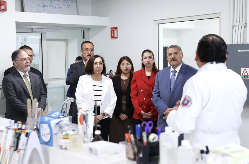 Acompañado por la directora de la FCQ, Argelia Vargas Moreno, el ejecutivo universitario recorrió los laboratorios de catálisis y energía, ingeniería y escalamiento de bioprocesos, electroquímica y biocatálisis ambiental, y química sustentable y materiales.