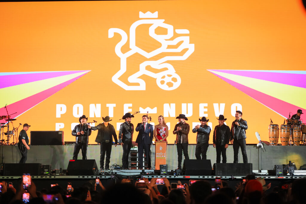 Posteriormente el Mandatario estatal se trasladó al escenario para encender el botón del conteo del Mundial que estará instalado en la Macroplaza y así dio paso a la presentación del Grupo Duelo quien inició interpretando su tema “El Amor no Acaba” y continuo la velada mexicana interpretando sus mejores éxitos.