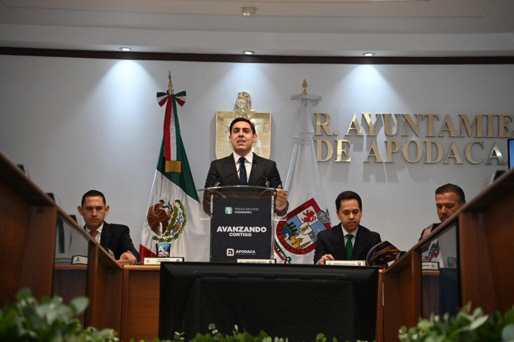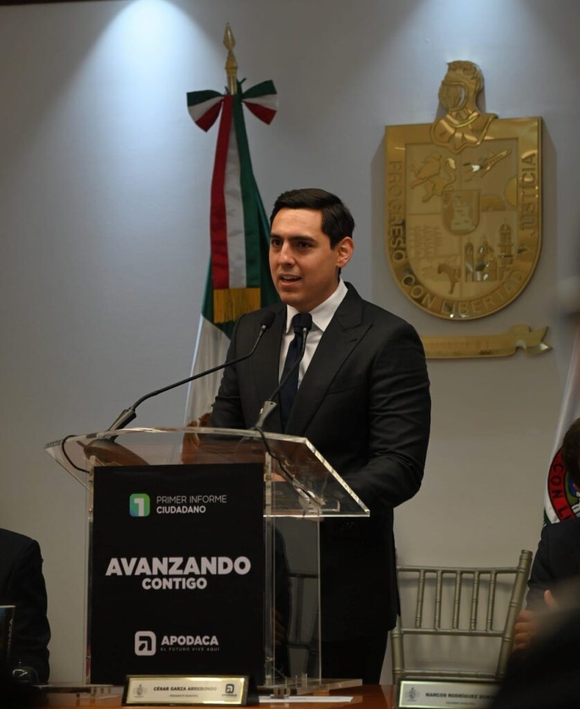 El alcalde de Apodaca, César Garza Arredondo, rindió su Primer Informe de Gobierno en el que destacó obras y programas emblemáticos que consolidan avances en infraestructura vial, movilidad, seguridad y programas sociales.