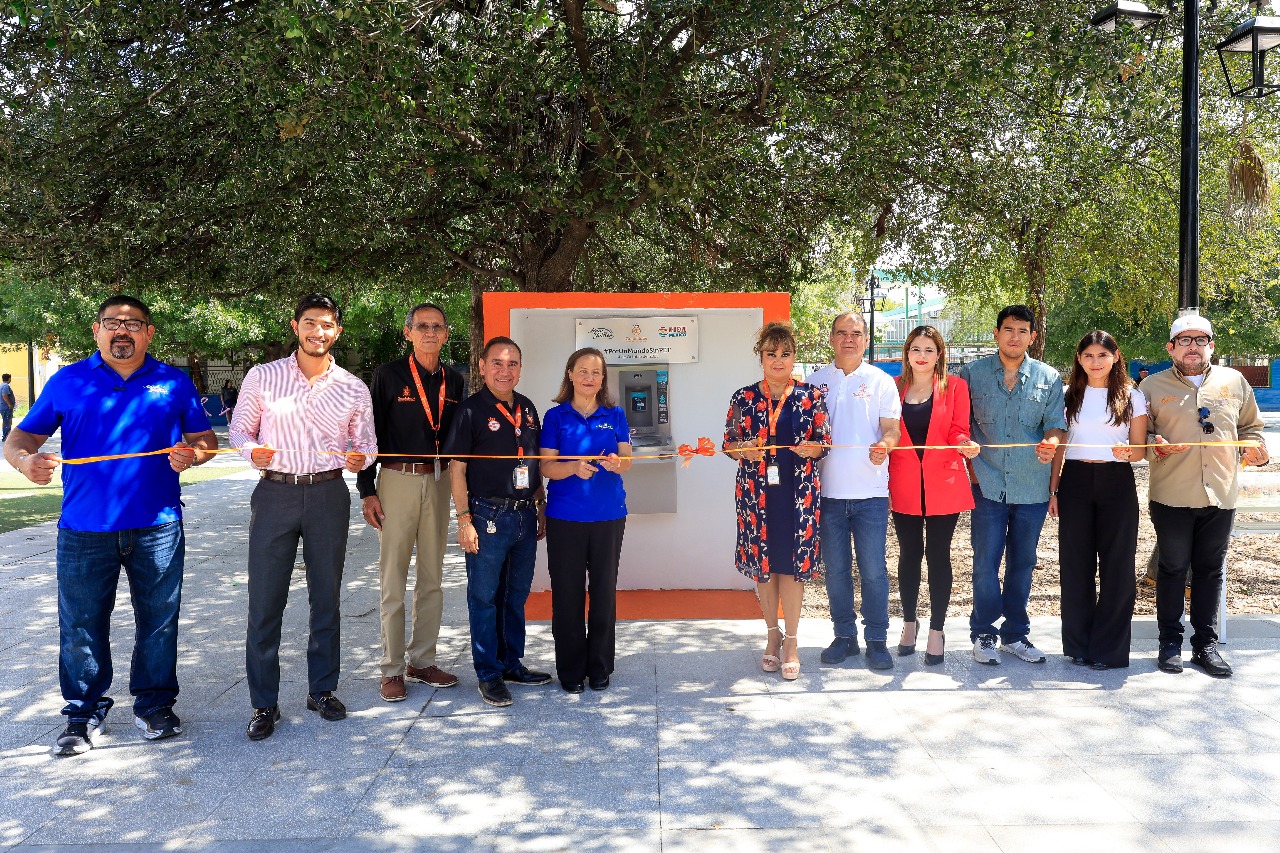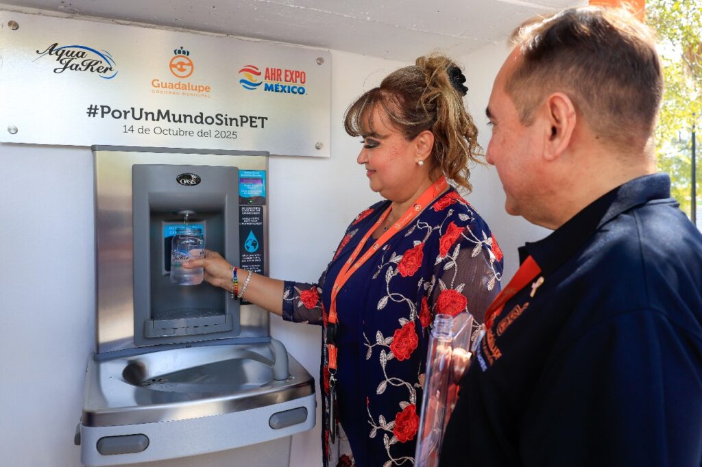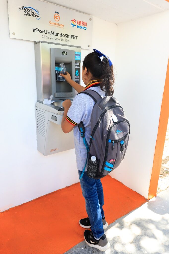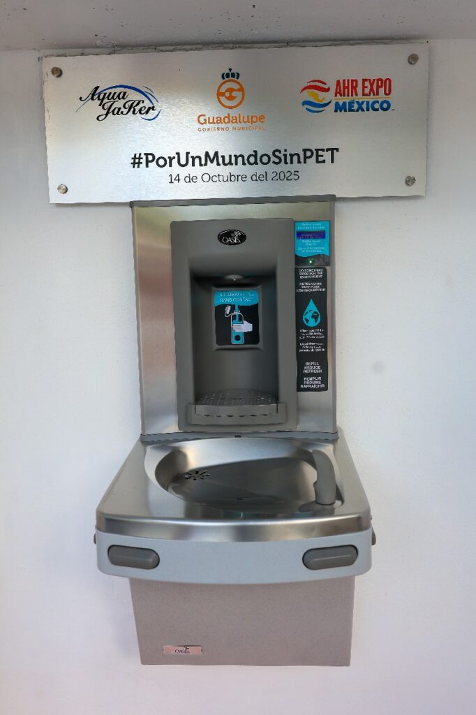 El bebedero de pared mecánico y rellenador de botellas electrónico que fue instalado en la plaza principal de Guadalupe, es el primero en su tipo que existe en Nuevo León y forma parte de la campaña “Por un mundo sin Pet”.