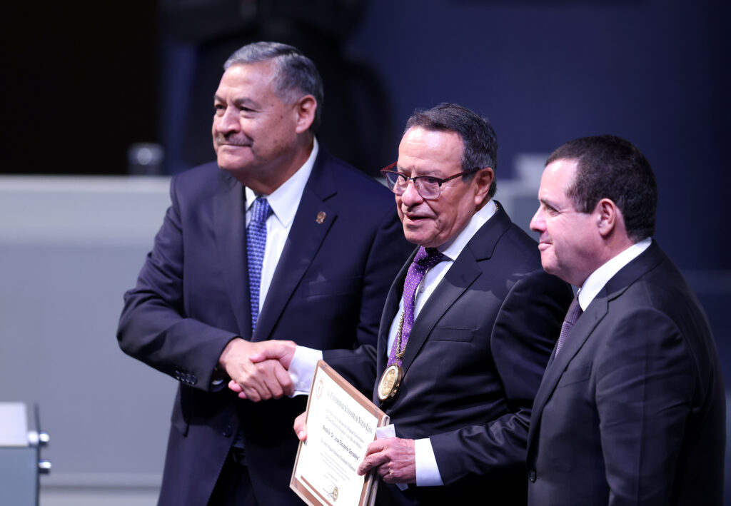 La Universidad otorgó la presea al pionero en trasplante hepático Miguel Escobedo Villarreal, al creador de la primera Unidad de Pleura en España y el Hospital Universitario, José Porcel Pérez, y al muralista Guillermo Ceniceros.