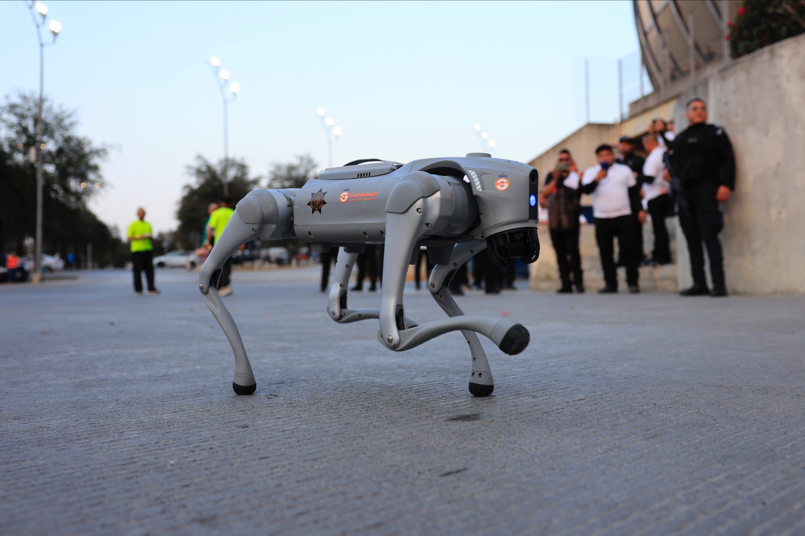 Los cuatro perros robots con los que cuenta el Municipio son manejados por elementos de la Secretaría de Seguridad y Protección Ciudadana de Guadalupe, quienes ejecutaron recorridos preventivos en el exterior del inmueble, cubriendo accesos y zonas de concentración.