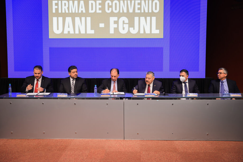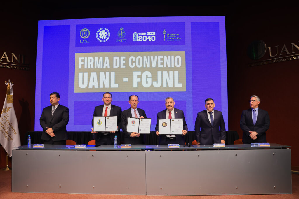 En busca de fortalecer el rigor académico y el conocimiento jurídico, la Universidad Autónoma de Nuevo León (UANL) y la Fiscalía General de Justicia del Estado firmaron un convenio de colaboración para ofrecer plazas de servicio social, prácticas profesionales y bolsa de trabajo a la comunidad universitaria.
