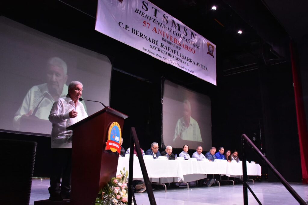 El Sindicato de Trabajadores al Servicio del Municipio de San Nicolás de los Garza, celebro su 57 aniversario que dirige el C.P. Rafael Ibarra Avitia, quién presento su informe de actividades, donde en un video se proyecto los logros hechos por el sindicato.