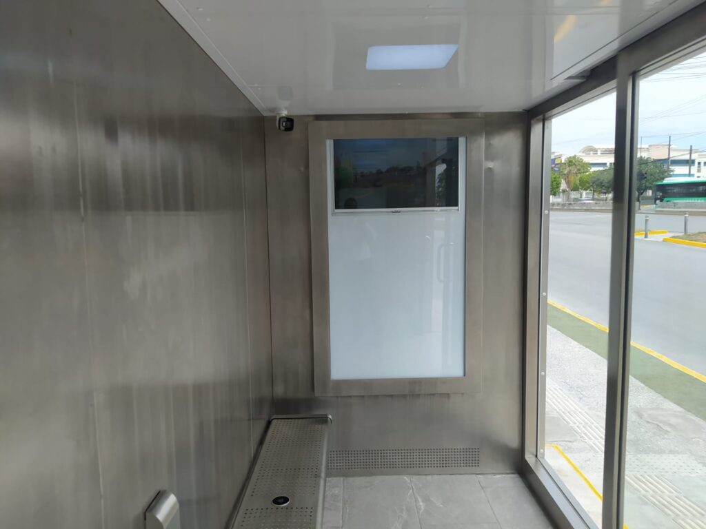 Entre su equipamiento destacan cámaras de vigilancia conectadas al C4, una pantalla que permite monitorear la llegada de las unidades, bancas, conexión para cargar celulares y sistema de clima, lo que busca brindar mayor confort durante la espera.